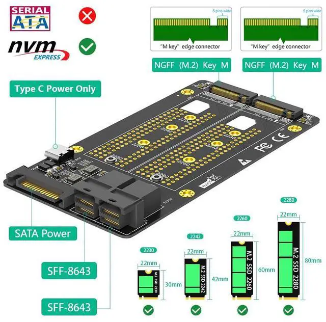 New Version Dual M.2 NVME SSD to Dual SFF-8643 Adapter