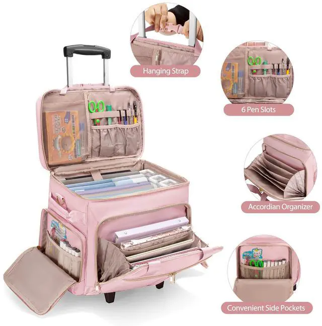 Prokva Rolling Teacher Bag with Wheels, Teacher Tote Bag with Detachable Trolley, Fits for 15.6" Laptop, Pink (Patent Design)