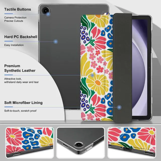 MEEgoodo for Samsung Galaxy Tab A9 Plus 11 inch Case 2024 2023 (Fit Model SM-X210/X216/X218), A9+ Tablet Cases with Silk Texture & PC Clear Back Cover, Groovy Flower