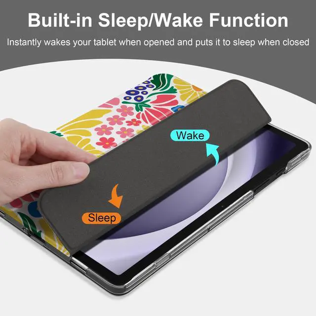 • Folding Stand: Strong magnetic connection to create a stable viewing stand for your Samsung Galaxy Tab A9+ tablet. 65 ° video mode can act as a screen stand; 30 ° input mode acts as a keyboard stand. Three-dimensional support, no slippage, to enjoy the happiness brought by Galaxy Tab A9 case at any time