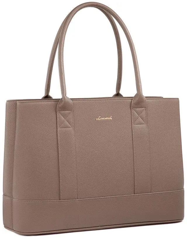 LOVEVOOK Women's 15.6 inch Waterproof PU Leather Laptop Tote Bag, Large Capacity Business Handbag, Black