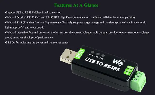 Onboard Original FT232RNL and SP485EEN chip. Fast communication, stable and reliable, better compatibility
