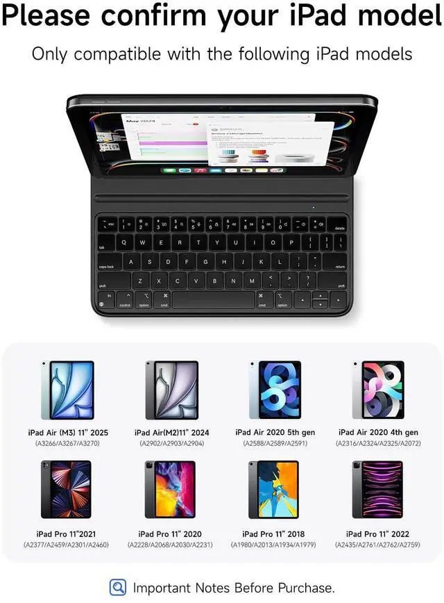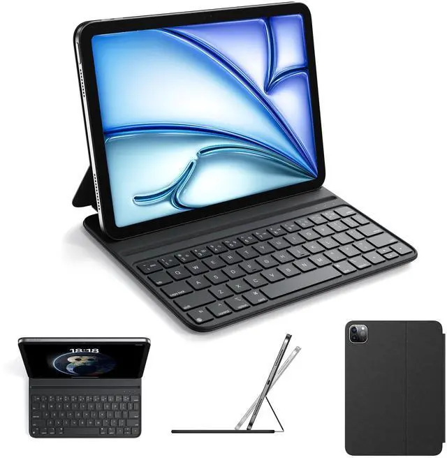 HOU Keyboard Case for iPad Air 11 inch M2/M3 & iPad Air 5th/4th(2022/2020) & iPad pro 11 inch 4th/3rd/2nd/1st (2018-2022) Smart Folio, Ultra Slim, Magnetic Charging, Adjustable Angle