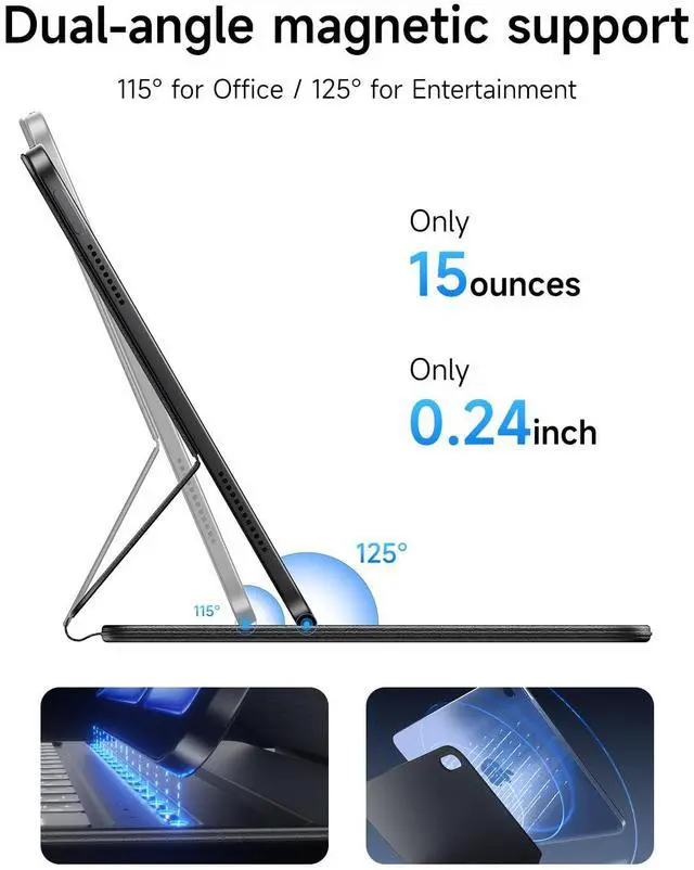 Minimalist design, reducing burden:Ultra-thin at 0.6 cm and ultra-light at 434 grams, it is 220 grams lighter than other multi-functional cases for iPad (equivalent to the weight of 16 Pro Max). The minimalist design breaks the record for thinness and lightness: it can be held with one hand and stored in a backpack like a textbook. It is perfect for iPad Air 11 / Pro 11 whether for commuting, traveling, or working in a café.