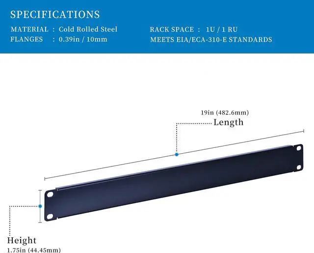 • Dimensions: 1.75 in H x 19 in W x 0.39 in D