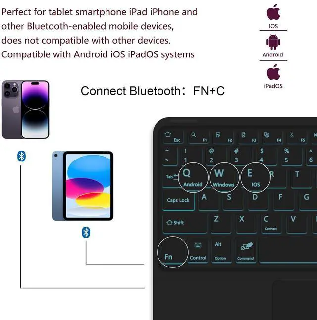 TopPerfekt Bluetooth Keyboard, Wireless Rechargeable Keyboard for iPad, iPad Pro, iPad Mini, iPad Air, Samsung Xiaomi Tablets, etc.