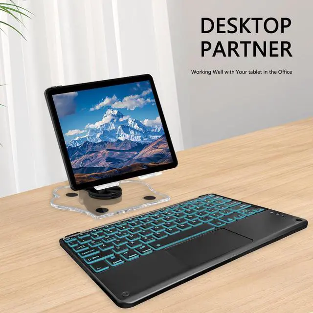 TopPerfekt for Bluetooth Keyboard Touchpad Built, Cute Tablet Stand Adjustable & Foldable, Wireless Rechargeable Bluetooth for iPad, iPad Pro / Mini / Air, Samsung Xiaomi Tablets, etc - Black