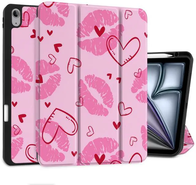 MEEgoodo Case for iPad Air 13 inch 2025 2024 (M3/M2), Tablet Cases with Trifold Stand + Pencil Holder + Auto Wake/Sleep + Soft TPU Back Cover, Cute Kiss & Love