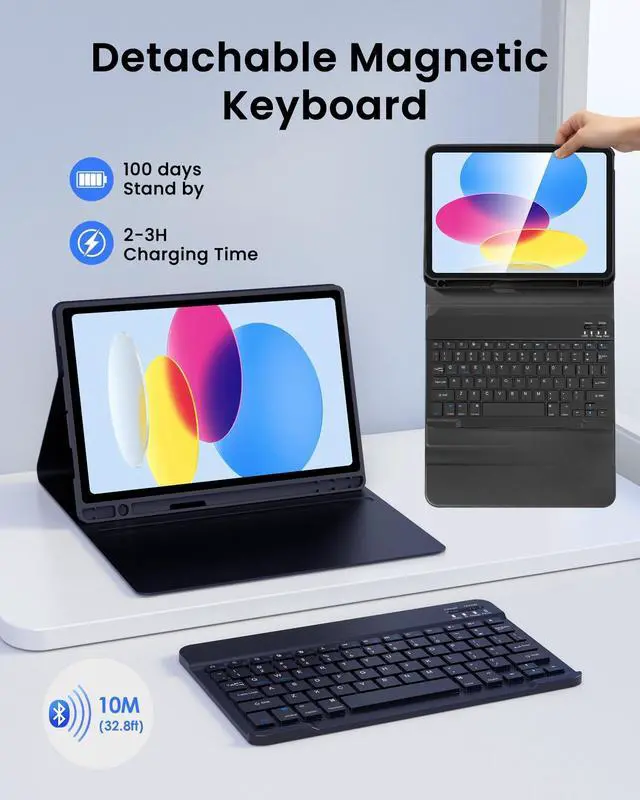 (NOTE: Please charge the keyboard for about 2-3 hours before first use). Automatically sleep or wake when the case is closed or opened, which preserves battery life, reducing energy consumption and extending device longevity. ^^ [Multiple Viewing Angles] With this sleek and stylish design, our small keyboard case can turn your iPad into a laptop in less than a second. You can change your tablet from different viewing angles to landscape mode to provide the most comfortable viewing position. Good for working, writing, or watching videos.