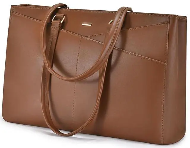 LOVEVOOK Laptop Bag for Women 15.6 Inch Tote Bags Waterproof Leather Briefcase Computer Women Business Office Work Bag,Brown Coffee