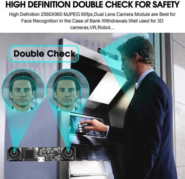 includes: 1PC 1.3 mp dual lens USB camera module with 90 degree M9 lens1PC 1m