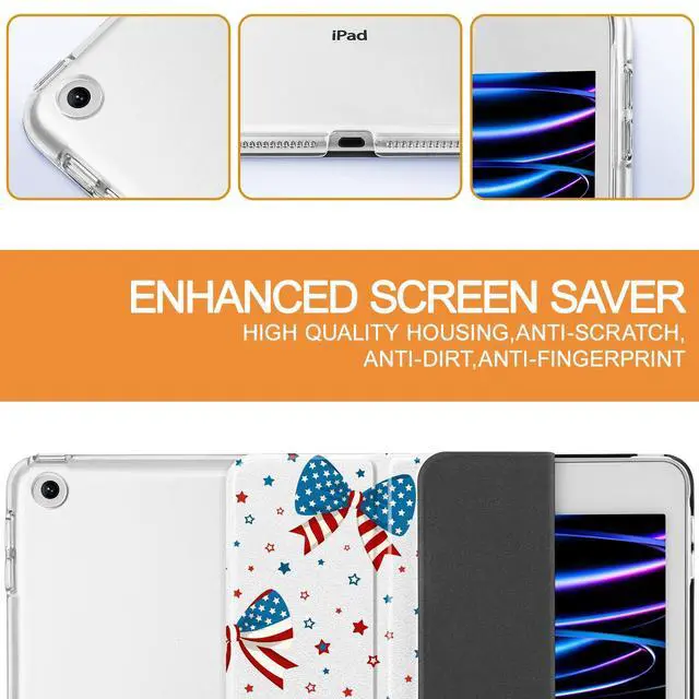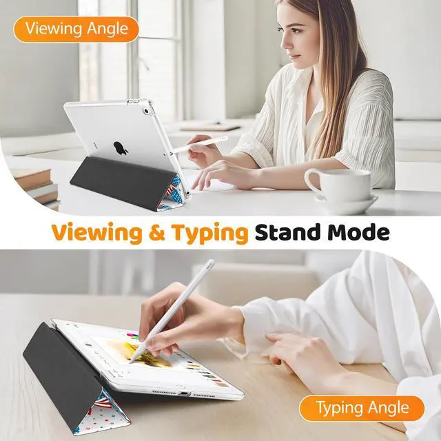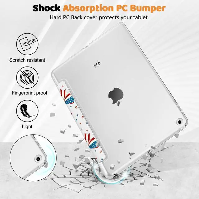 Generation Model: A2197/A2200/A2198. Premium MaterialThe clear transparent back shell is made from durable PC material, and keeps iPad slim, clear and lightweight in the same time. Multi-pattern ChoiceThe unique patterns created by the designer make your iPad unique and fashion, a perfect gift to your friend or family. Smart CoverProvides auto sleep/wake function with built-in magnetic strip. Comfortable viewing angleMagnetic cover easily transforms the case into viewing and typing stand. Precise CutoutsNecessary cut-outs for speaker, lighting port, camera and flash, easily access to all buttons without remove the case. PLEASE NOTEColors shown in pictures may slightly differ from actual product due to lighting and color settings. Package include1 Pack of clear PC Protective Case for iPad 10.2 inch 9th/8th/7th Generation.