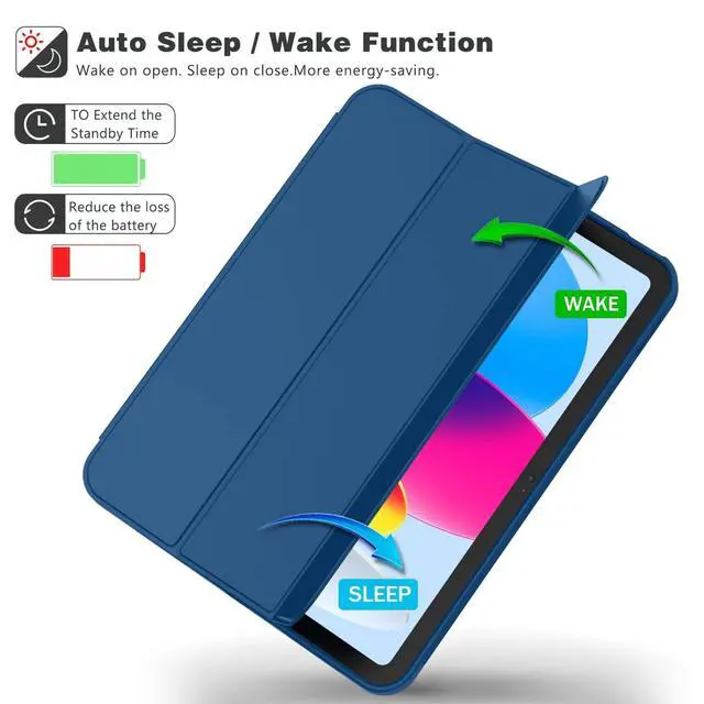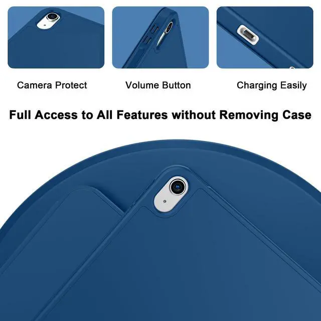 ToaPoia Case for iPad (A16) 11 Inch 2025/iPad 10th Generation 10.9 Inch 2022, Slim Trifold Stand Protective Cover with Pencil Holder and Soft TPU Back,Support Auto Sleep/Wake (Navy Blue)