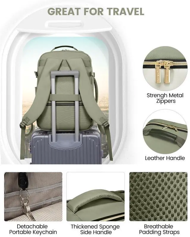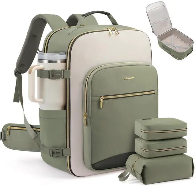 Perfect for storing wet clothes, towels, and toiletries, these packing accessories ensure your belongings remain dry and prevent any leaks or moisture from affecting your other items. ^^ Durable & ComfortableBuilt to withstand the challenges of travel, this carry on backpack is made from tear-resistant, water-resistant, and abrasion-resistant materials. It also has adjustable shoulder straps, a padded back panel, and shoulder straps, ensuring comfort during long trips; a travel essential. ^^ Secure & PracticalThis large travel backpack features a suitcase-style opening for easy access to your belongings at security checkpoints.