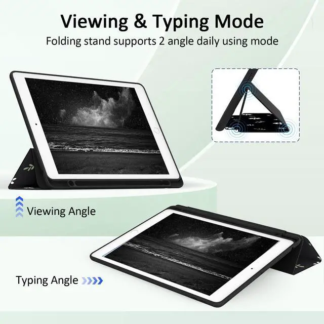 [Compatibility] Jarviwiin only fit for iPad 10.2 inch 9th 2021 /8th 2020 /7th 2019 (Model: A2602 / A2603 / A2604 / A2605 / A2270 / A2428 / A2429 / A2430 / A2197 / A2200 / A2198). Not compatible with any other devices. Please check the model number on the back of your iPad. ^^ [Full Protection] Made of durable premium PU leather and soft TPU, it can protect your iPad from drop and scratches. Hard PC transparent back cover provides strong support and show the original color of your iPad. ^^ [Built-in Pencil Holder] The case has a built-in pencil holder, which allows you to carry and protect your pencil wherever you go. (Pencils are not included) ^^ [Multiple Usage Scenarios] The tri-fold front cover of the protective case can provide two usage angles, making it easy for you to use in multiple scenarios, such as typing, video chatting, and watching movies. ^^ [Auto Wake/Sleep] Built-in hidden magnetic strip provides sleep/wake feature, save the energy in daily use.