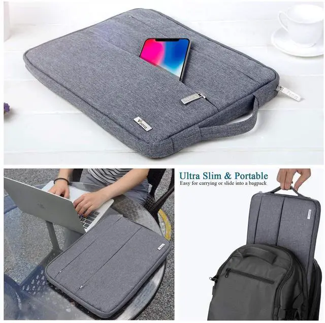^^ High-quality Materials: The surface of the laptop sleeve cover is made of high quality oxford fabric, which is waterproof and spill-resistant fabric material. There is no need to worry rainy days when you are out, the handbag will give your tablet good protection. The top quality zipper slides smooth and like butter, which is easy to pull open and closure, the best companion for your computer.