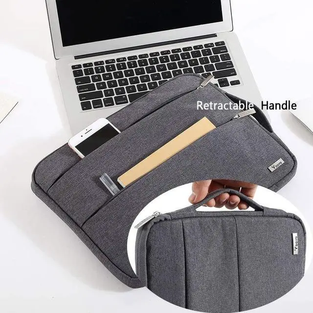^^ Easy to Carry: The deluxe laptop case has a retractable handle. The top handle instead of a side handle, so it makes laptop bag easier to get out of your backpack or suitcase. If you tend to drop things so the laptop case having a handle is very convenient, not have to hold it and worry about it slipping out of your hand.