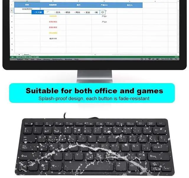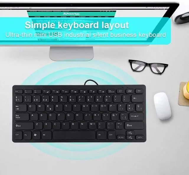 Simple keyboard layout, no need to learn any adaptation process. You will enjoy the comfort and simplicity of the simple keyboard layout on the first day you use. ^^ Inherently, sturdy and, with splash-proof design, each is fade-resistant, so you don't have to worry about the letters on the buttons. ^^ Plug and play, enjoy unlimited fun experience. ^^ Suitable for both office and games: intimate design, comfortable experience. ^^ Ultra-thin mini USB industrial silent business keyboard.