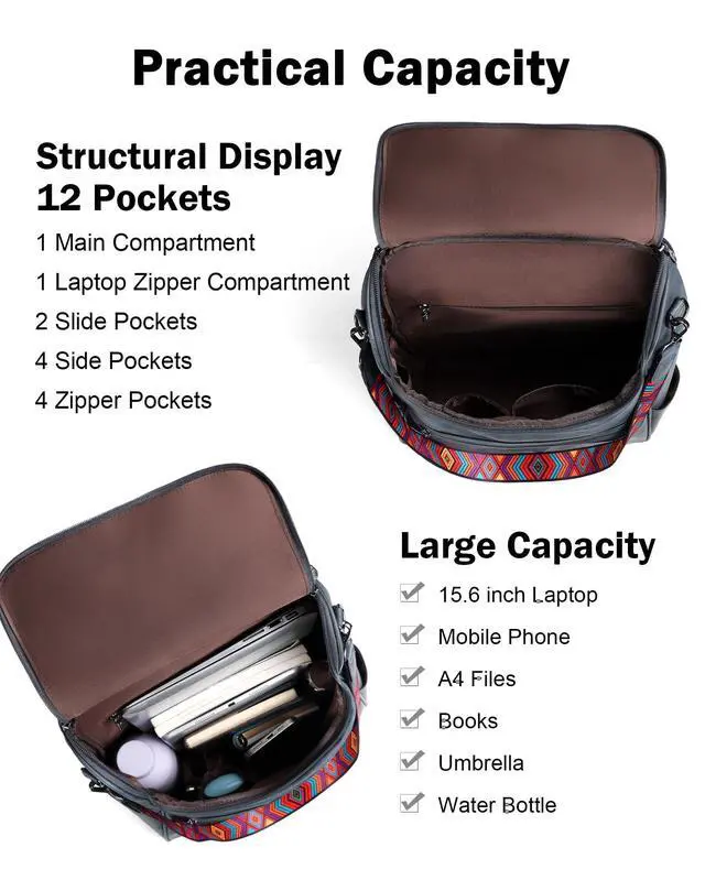 ^^ Shoulder Backpack: This backpack laptop bag for women with a detachable strap can be converted into a shoulder backpack or handbag to meet the needs of different occasions. So the leather laptop backpack with laptop sleeve suitable for a variety of occasions, such as shopping, work, travel, dating, camping, dancing or hiking, for 2-3 days business trip.