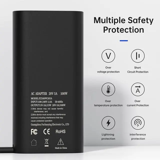 High-Efficiency Type C Charging Technology: Engineered with type c fast charger and usb-c charger capabilities, this usb c laptop charger delivers rapid energy transfer through its advanced USB-C port. Enjoy type c charger fast charging that maximizes speed and minimizes downtime for laptops and accessories.