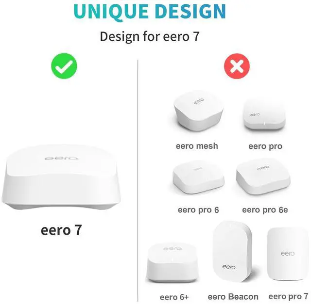 Design for eero 7 Compatibility - Precisely engineered for eero 7. The housing features a cutout for Ethernet cable routing and a secure plug slot, ensuring a perfect fit. (**NOT compatible with eero Pro 7, outdoor 7 or other older models. **) ^^ Space-Saving & Secure - With Friendly Support. This wall mount holder for eero 7 securely holds your eero 7 while freeing up desk or shelf space.