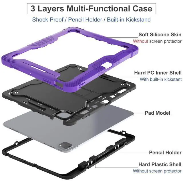CompatibilityThe case is designed for iPad Pro 12.9 inch 6th 2022(A2764/A2437/A2766), iPad Pro 12.9 inch 5th 2021(A2378/A2461/A2379/A2462), iPad Pro 12.9 inch 4th 2020(A2229/A2069/A2232/A2233), iPad Pro 12.9 inch 3rd 2018(A1876/A2014/A1895/A1983), Please check back bottom of your iPad to find the model number ^^ Full Body ProtectionThe iPad Pro 12.9 inch protective case features upgraded 3-IN-1 shock-absorbing protective structure, rugged hard PC and durable silicone outer layer to fully protect your iPad from accidental drops, bumps, shocks, and scratches ^^ Adjustable Shoulder StrapThe iPad Pro 12.9 inch protective case comes with an adjustable nylon strap.