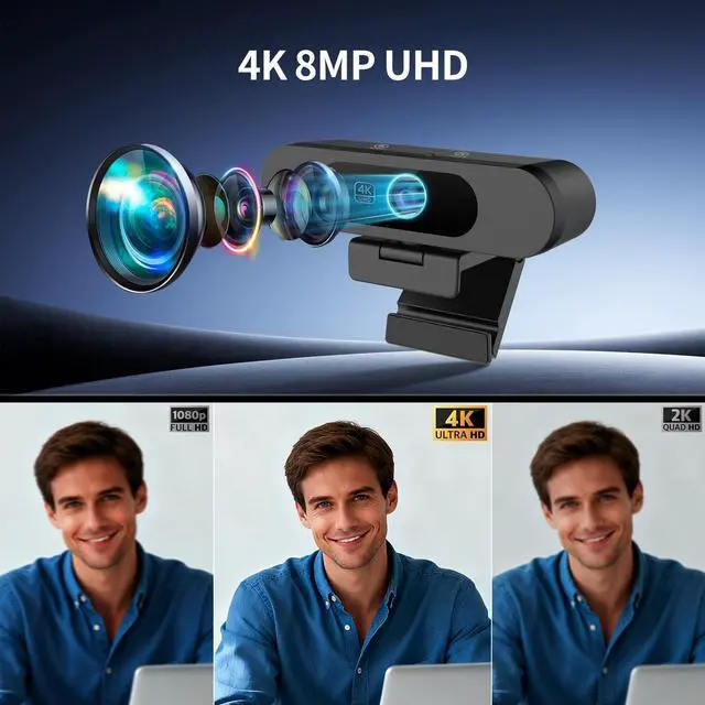 & Auto Light CorrectionDual Microphone: This 4K webcam for pc captures every details for a clear and smooth video conferencing experience, perfect for conference calls, online classes and live streaming. Auto light correction helps you look your best in dim and harsh lighting. You do not need to draw the curtains first to get a normal exposure picture when video calls come. ^^ Auto framing