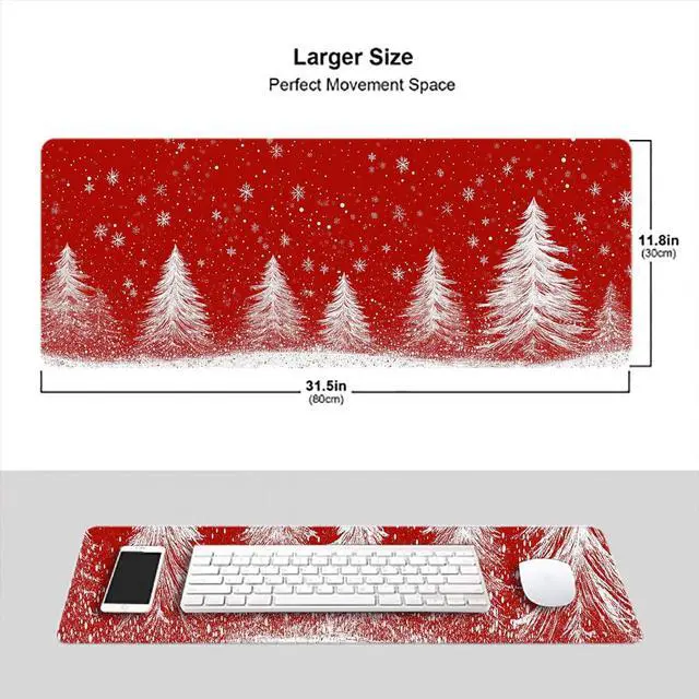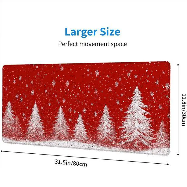 Generous Dimensions for Versatile UseDesigned with an extended size of 31.5 x 11.8 inches, this Red Christmas gaming, it ensures a tidy, organized desktop environment. ^^ Premium Smooth Surface for Enhanced PerformanceCrafted from high-quality soft waterproof cloth, this mouse pad features a silky-smooth texture that enhances the gliding experience. Enjoy seamless mouse movement with excellent speed and pinpoint accuracy, making it an ideal companion for gaming sessions or precision-demanding work. ^^ Secure Non-Slip Rubber BaseThe durable non-slip rubber base is engineered to firmly grip your desktop, eliminating any unwanted shifting during use.