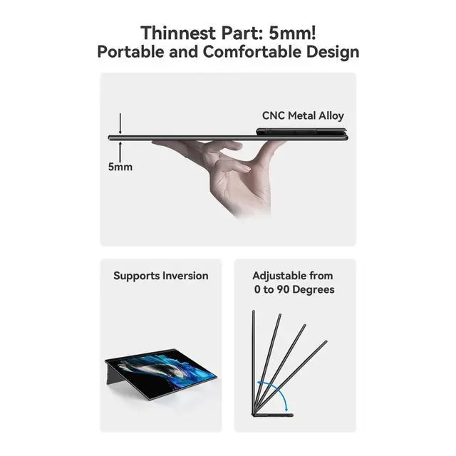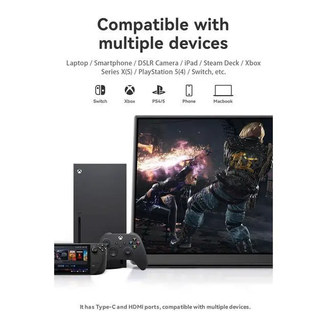 VERSATILITY: Compatible with multiple devices and ideal for various uses including gaming, office work, and digital content creation ^^ All-in-one connectivity. Delivery protection device, including all wiring required for plug and play settings, ensuring seamless connection with various devices, and set it to horizontal or vertical mode as needed, the smart shell made of PU magnetic material can protect the screen from scratches and carry a portable stand. ^^ Wide compatibility, no driver required. Equipped with 2 fully functional usb type-c ports and 1 mini HDMI port, it solves the problem of multi wire entanglement, easy to connect with gaming consoles, laptops pc, the tablet is connected to a mobile phone and comes with 2 built-in speakers and a 3.5 mm audio jack, providing a better entertainment experience, is the perfect companion experience for your work, gaming & travel. ^^ The packaging box is equipped with all accessories: Q3 Portable Gaming Mointor with Stylus Pen 8K HDMI Cable Function Multi Interface Converter 30W PD Adapter Instruction Manual A multifunctional interface converter and a protective bag for Extra gift.