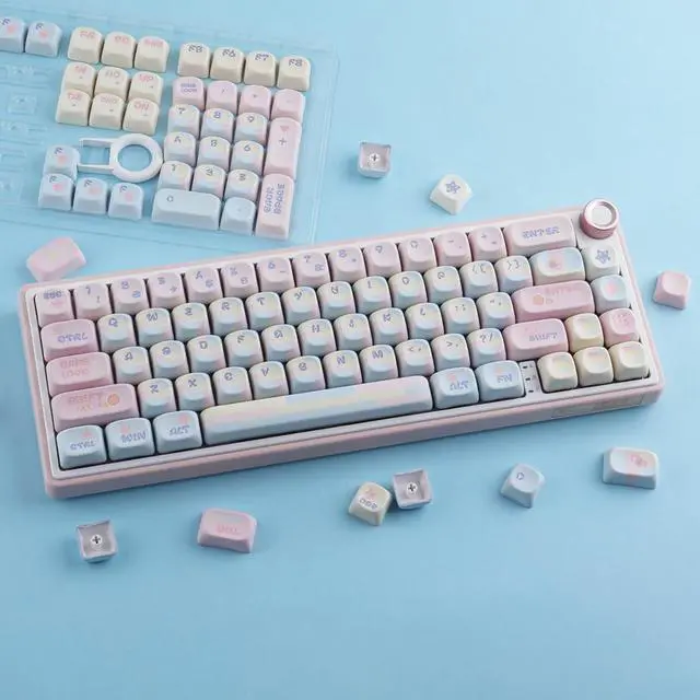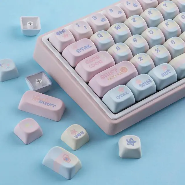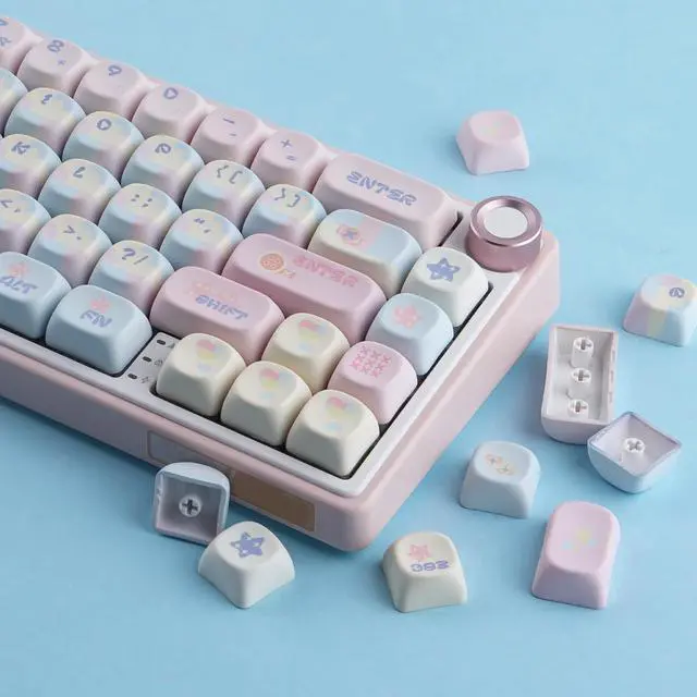 Whether you're a gamer, typist, or simply want to add a touch of kawaii to your keyboard, these keycaps are perfect for you. Compatible with most keyboard models, including RK61, Keychron, and 60% keyboards, these keycaps provide an easy way to customize your keyboard to match your style. The dye-sublimated legends ensure that the keycap legends won't fade over time, maintaining their vibrant and crisp appearance. Upgrade your keyboard with these Pink MOA Profile PBT Keycaps and enjoy a unique and personalized typing experience. Perfect for Valorant enthusiasts, anime lovers, or anyone who appreciates cute and stylish keycaps.