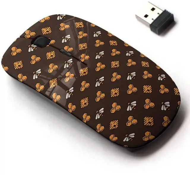 CJCBROES 2.4G Wireless Mouse with Cute Pattern Design for All Laptops and Desktops with Nano Receiver - Yellow bee hive Honeycomb on