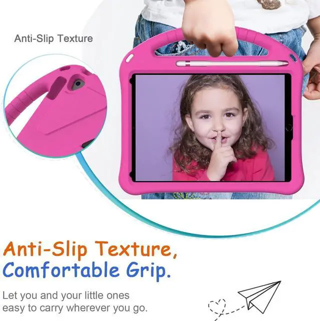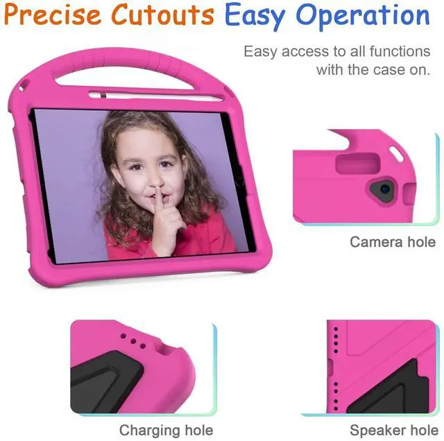 Features: Shock Protection- Made of ultra-light, skin-friendly, safe and non-toxic foam material, protects your tablet from daily bumps and scrapes. Precise Cutouts- Customized openings allow to access to all ports, buttons and cameras without removing the case. Stable Stand- Built-in 2 foldable bases to prop your tablet up on the desk for hands-free horizontal viewing or typing. Pencil Holder- Built-in a pencil slot, you can put your iPad Pencil 1st generation in the case and no worries about the pencil's loss. Top Handle- Anti-slip and comfortable grip handle is great for outdoor activities, little hand can also easy to carry it anywhere.
