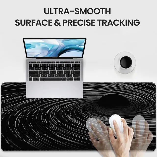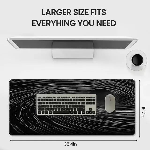XXL Extended Mouse PadOur 35.4" x 15.7" (900x400 mm) extra-large mouse pad provides ample space for keyboard and mouse to move around and meet the needs of a variety of task workers. The thickness of 3 mm provides optimal comfort during long gaming or office work while protecting your desktop surface. ^^ Non-slip Rubber BaseThe non-slip rubber backing prevents the fabric from gathering and ensures perfect mouse tracking accuracy for competitive games ^^ Waterproof & Smooth SurfaceEnhanced with nano-coating technology, this waterproof table mat protects the tabletop from scratches, resists liquid spills and sweat stains, is easy to clean, just wipe it with a damp cloth or paper towel, the precisely textured surface ensures perfect mouse tracking accuracy for competitive gaming, while the durable stitched edges can be used for a long time.