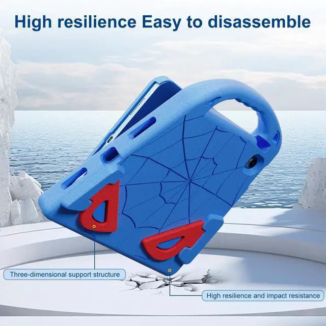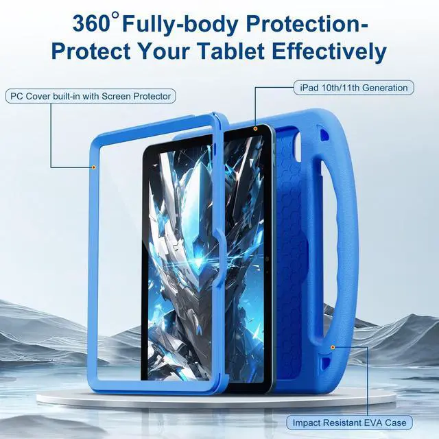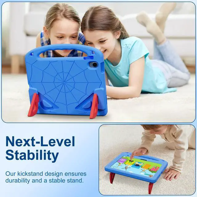 ^^ Versatile Stand: Designed with a kid-friendly handle with anti-slip texture. It is easy for kids to carry around and fold it back to convert into a sturdy stand for hands-free viewing and comfortable typing.