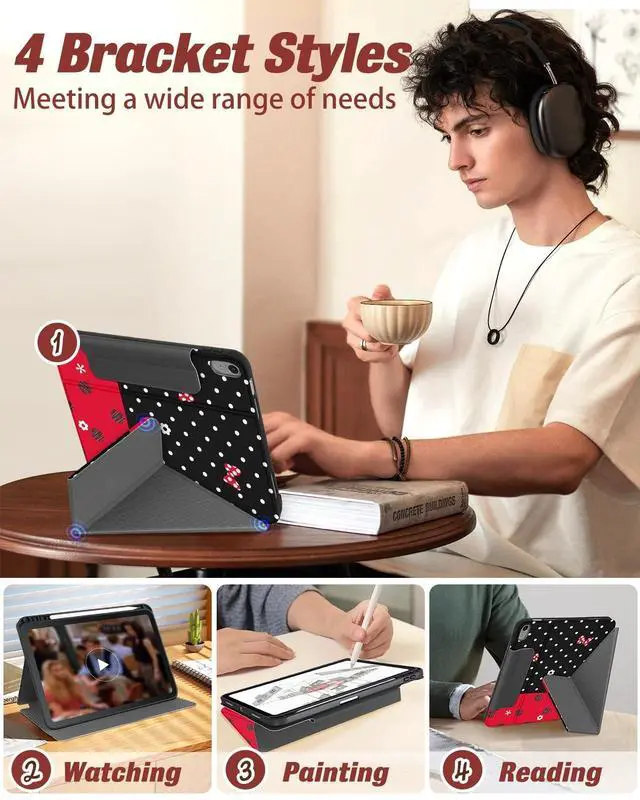 Our cases are compatible with iPad 10th Generation 2022 10.9 Inches(Model A2696/A2757/A2777), 11th (A16) Generation 2025 11 inch(Model A3354/A3355/A3356), make your iPad can stand at 4 different positions on the table. Provide you comfortable viewing and typing experiences ^^ Our cases for iPad 11/10 gen are made of premium durable PU leather and soft TPU, offer a good protection from drop and shock. It is stain resistant, and easy to clean. The high-definition printing process makes clear pattern and it not fade easily ^^ This for iPad 11th gen case, for iPad 10th gen case has built-in pencil holder, so you can place and remove your apple pencil easily.