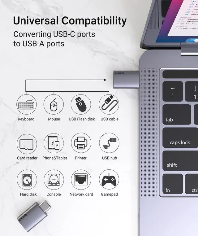 USB 3.2 Adapter: Syntech adapter converts USB C port devices to USB A ports and then connects other standard USB A devices. Enables data transfer and charging function between USB A peripherals and devices equipped with USB C ports.