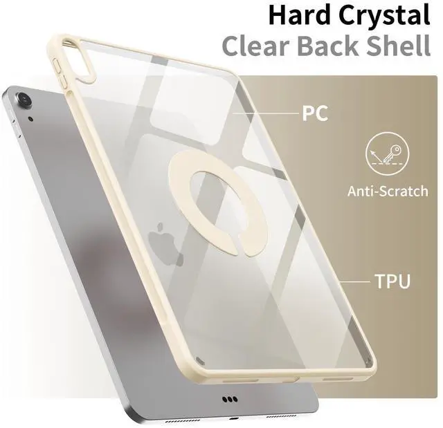 KVTVOU Case for iPad (A16) 11th/10th Generation (2025/2022, 11/10.9 Inch) with Clasp, Smart Magnetic Detachable Multiple Stand Cover, Hard PC Clear Transparent Back Shell & Auto Sleep/Wake, Cream