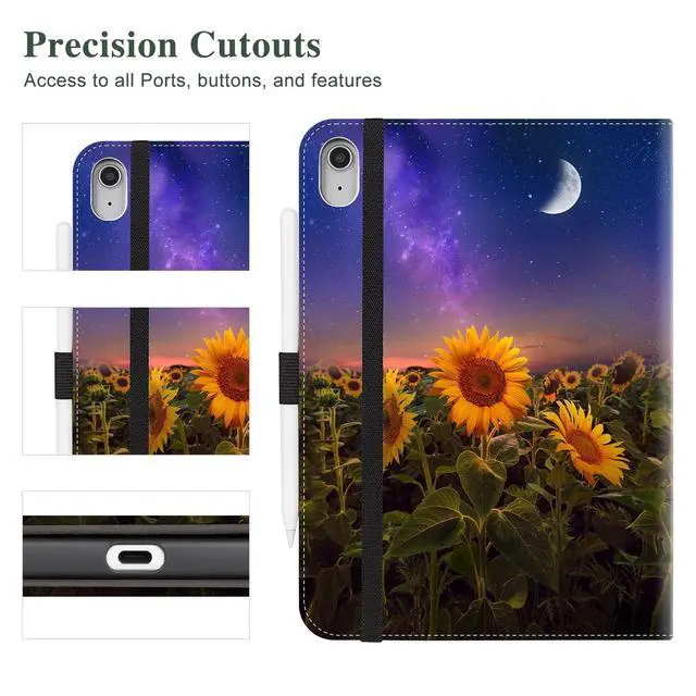 Vimorco Case for iPad (A16) 11th Generation 2025, for iPad 11th/10th Generation Case, Faux Leather Protective Adjustable Cover, Auto Sleep/Wake, Card Pocket with Pencil Holder, Starry Sunflower
