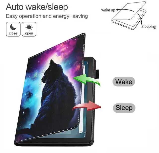 Made of durable Luxury PU leather to prevent scratches. It is durable, slim, comfortable, lightweight. Viewing angle frees your hands from other activities and avoids any joint pain, and enables you to type or watch videos comfortably. Smart Auto wake up /sleep funcation for energy saving, extend stand-by time. Designed with 4 delicate card slots inside for you to carry your necessary cards. There is a flexible pencil holder at the edge of the shell for keeping your stylus in place (Stylus is not included). Precise cutouts align well with your tablet's features (camera, speaker, ports and buttons) and allow smooth operation without removing the case.