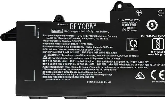 Condition: Brand New. ^^ Replace Part Number SX03XL SX03045XL 996QA176H HSTNN-DB9S HSTNN-DB9P HSTNN-IB9D HSTNN-IB9I L77689-2B1 L77689-171 L77689-172 L78125-005 ^^ Compatible with Laptop Models for HP ProBook x360 435 G7 1F3G6EA 1F3G9EA 1L3L2EA 1L3R5EA 1Q2W3ES 1V2Y7PA 1Y8K6PA 3S071AV 17G35UT 17G36UT 17G38UT 18Z98LA 175W9EA 224U0PA series; for HP ProBook x360 435 G8 2X7P7EA 2X7P9EA 3A5L3EA 3A5N1EA 3A5N2EA 3G0S1PA 32M35EA 32M90EA 32N44EA 32N45EA 32N48EA 38Y41UT 38Y69UT R7-5800U series ^^ Purchase Skills Please open the back cover of the laptop before ordering and make sure that the original battery model is consistent with the listing. After getting the battery, please install the battery correctly, make sure that the battery connector is firmly connected to the laptop motherboard, and use the original charger to charge the laptop. Discharge the new battery to 5% (not 0%), then charge and cycle 3-4 times to wake up the new battery. ^^ EPYOBW Promise All EPYOBW's batteries are certificated by UL / CE / FCC / RoHS. Our batteries are tested by strict quality control standards to ensure that the capacity is true, stable current, low self-discharge. And we also have short circuit, overheat, and overload protections.