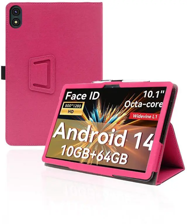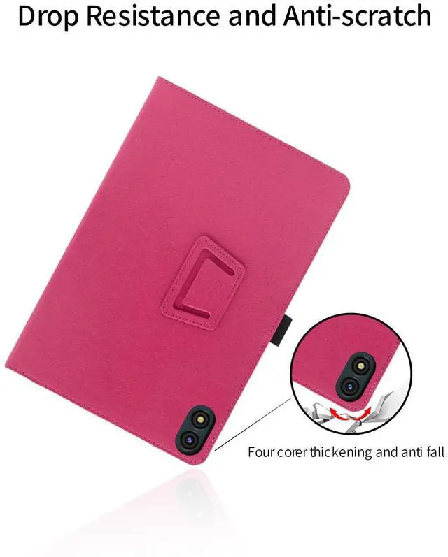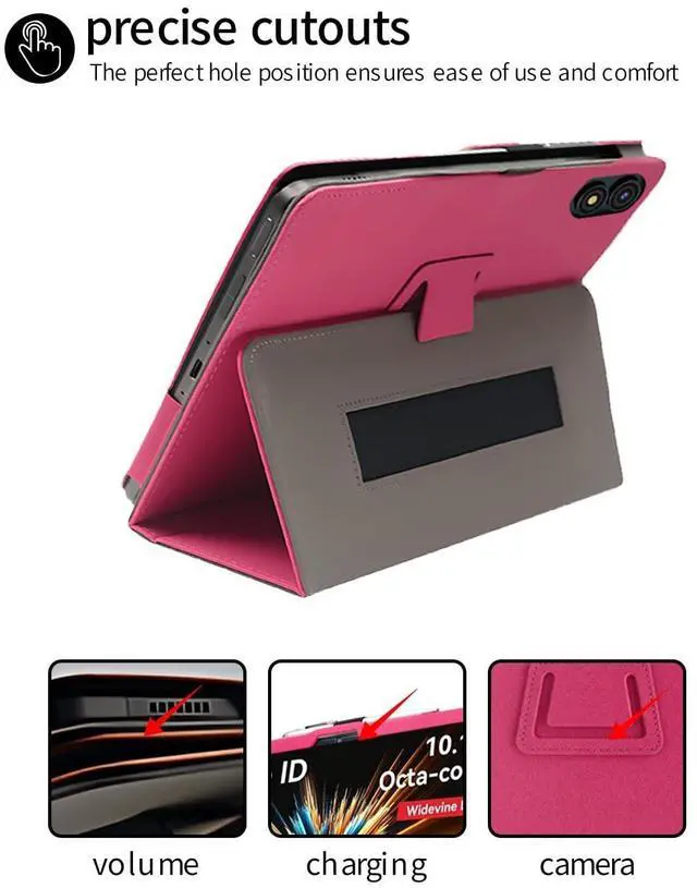 for TUOHAITIME C30 10.1 Inch Android Tablet Case,Folding Stand Protective Cover with Pencil Holder and Wrist Strap,Full Protection, Premium PU, Scratch Resistant(Rose Red)