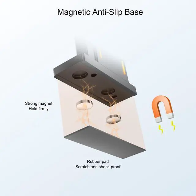 Magnetic Base for Secure Installation: Enjoy easy setup with the non slip rubber pad that ensures a secure attachment to the bottom of your PC case. The strong, integrated magnet holds the stand firmly in place without the need for screws or tools. This feature allows for easy, repositionable installation and removal while avoiding damage on your case.