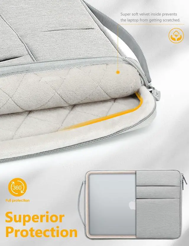HYZUO 13.3-14 Inch Laptop Sleeve Bag for MacBook Pro 14 M5-M1, MacBook Air/Pro 13, 13.8-13.5 Surface Laptop/Book, Portable NoteBook Case for 13" HP Dell Lenovo ThinkPad Asus Acer Samsung, Light Gray