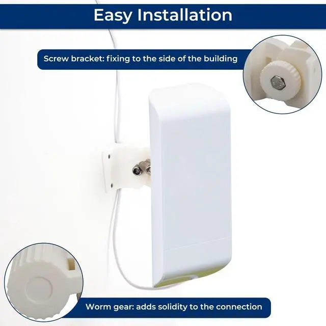 ^^ Easy Installation: The bracket is easily installed with 4 stainless steel screws. A simple screw bracket secures the bracket to the side of the building and a heavy-duty stainless steel worm gear ensures a strong connection.