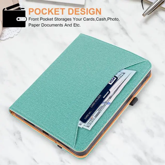 Features: 1. Front Pocket Design, Can Store Personal Items Such As Bank Cards, Cash, Etc. 2. Multi-Angle Support, You Can Adjust The Appropriate Angle According To Personal Needs, And The Anti-Slip Strip Prevents The Tablet From Slipping During Operation. 3.