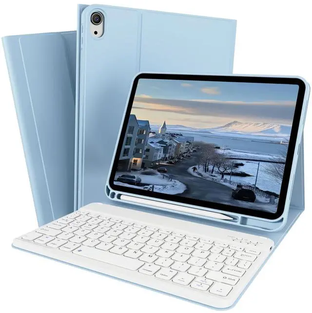ZOPSGYU for iPad (A16) 11th Generation 11 Inch 2025, 10th Generation 10.9 Inch 2022 Case with Keyboard, Detachable Wireless Bluetooth Keyboard, Multi Angle Flip Cover with Pencil Holder, Sky Blue