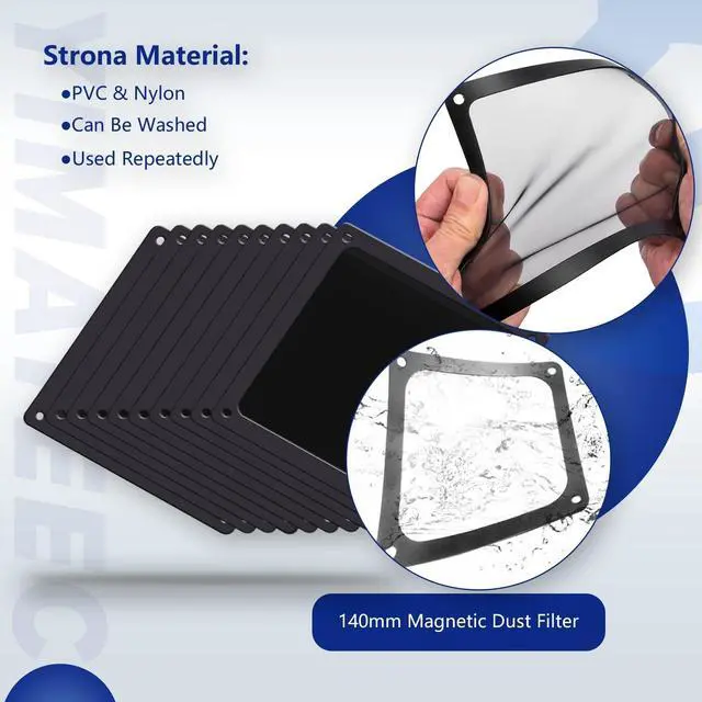 DELIVERY LISTYIMATEECO Provides: 10 x 140*140mm PC Dust Filter Black (NYLON & PVC) + 20 x 40*10mm Nano Gel-Mat (Acrylic) + 40 x 5*10mm M5 Fans Screws (Q235 STEEL). ^^ PRODUCT DESIGNWeak magnetic design, Easy to install and disassemble. It can be easily placed in any position on the metal chassis without any tools or screws (it is also compatible with traditional Screw and Stickers mounting). ^^ CHOICE OF PETS FAMILIESThe ultra-small aperture as low as 0.2 mm (80 Mesh) can not only effectively prevent the hair of cats, dogs, rabbits and other pets from being involved in the case and cause short circuits, But also provide effective protection for pets. ^^ STANDARD SIZE CONTROLCompatible with standard specifications of all products on the market. Washable and reusable (only wipe gently, do not bend, do not machine wash). Recommended to be replaced every three months (or cleaned when dust is present). ^^ AFTER SALES SERVICE If you are not satisfied with the 80 Mesh Nylon Dust Filter, Please contact us by email. YIMATEECO will provide you with help within its capacity and strive to give you a good shopping experience.