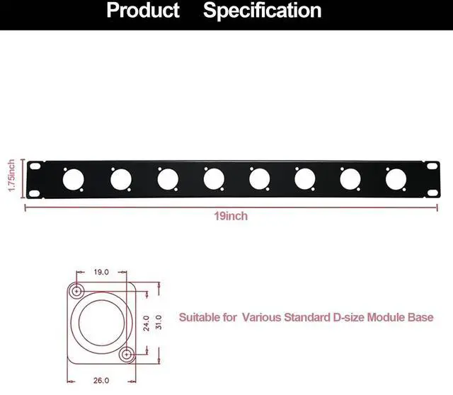 Dimensions: 19 inches wide x 1.75 inches high (standard rack unit size). Compatible with a wide range of XLR cables and audio equipment.