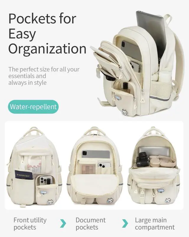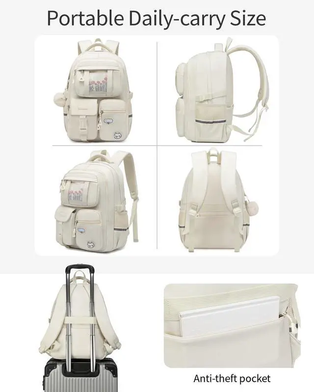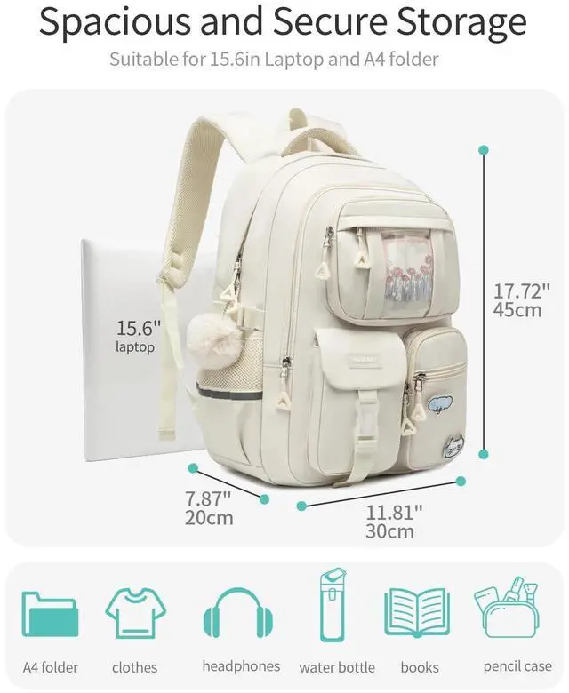 Pack It All In: Simple & convenient design, 15.6" or 17.3" laptop sleeve, 1 huge main compartment for A4 folders, books and lunch box, middle pocket with organizer, 5 front utility pockets, 2 side pockets and a back anti-theft pocket. Whether your carrying textbooks, tech gadgets, or travel essentials everything has its place within this versatile pack. ^^