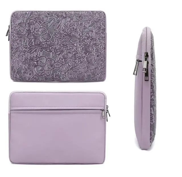 Canvaslove Embossing Floral Pattern PU Leather Laptop Sleeve Case with Pocket (Purple PU, 16 inch)